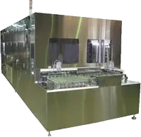 過熱水蒸気を使用した連続式コンベア炉。豊富なバッチ処理式の経験をもとに、コンベア式にて高効率生産を狙った装置で、電子基板等のシート状製品に利用されています。